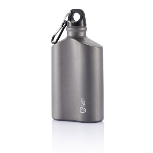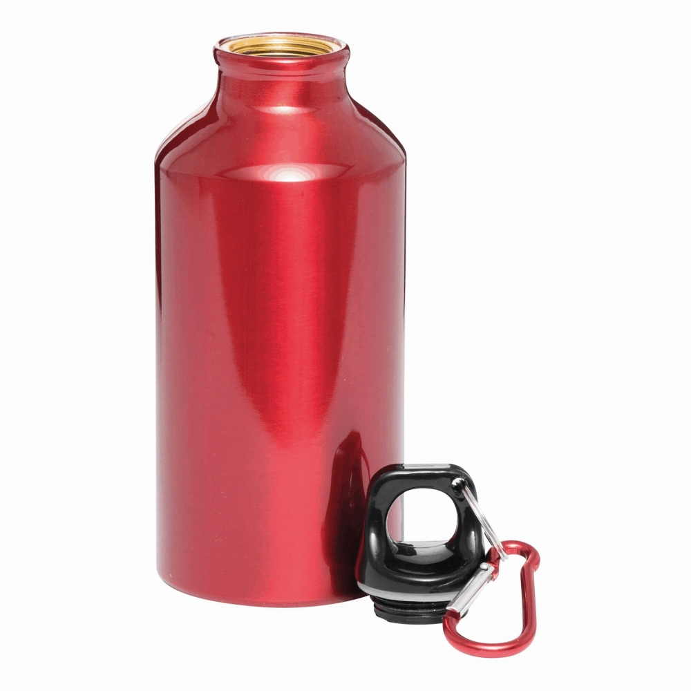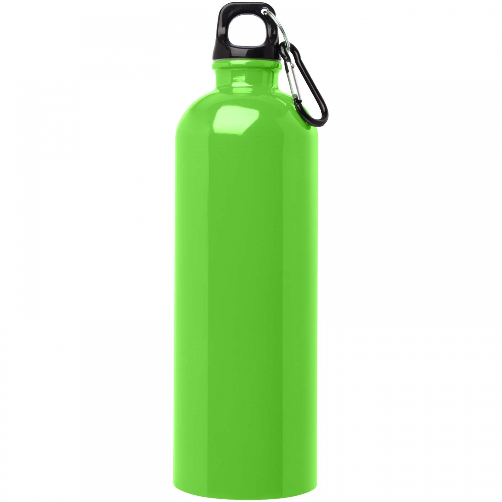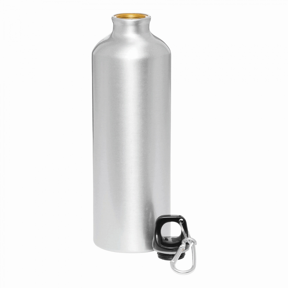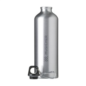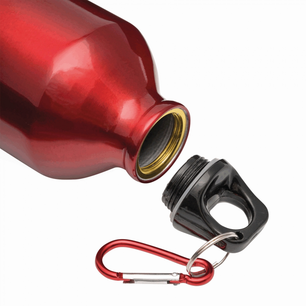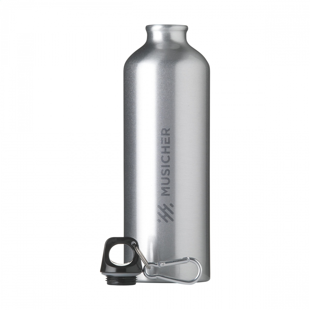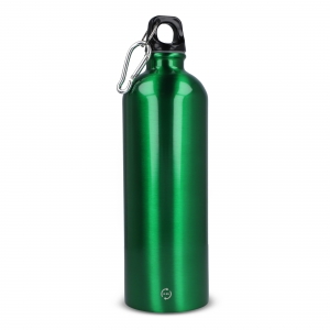 Aluminium Trinkflasche mit 800 ml Fassungsvermögen. Mit aufschraubbarem Sicherheitsverschluss und Metallkarabiner für den einfachen Transport. Originelle Mattlackierung in einer breiten Farbpalette. Einzeln verpackt in einer Designbox.