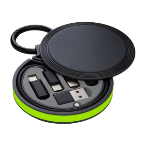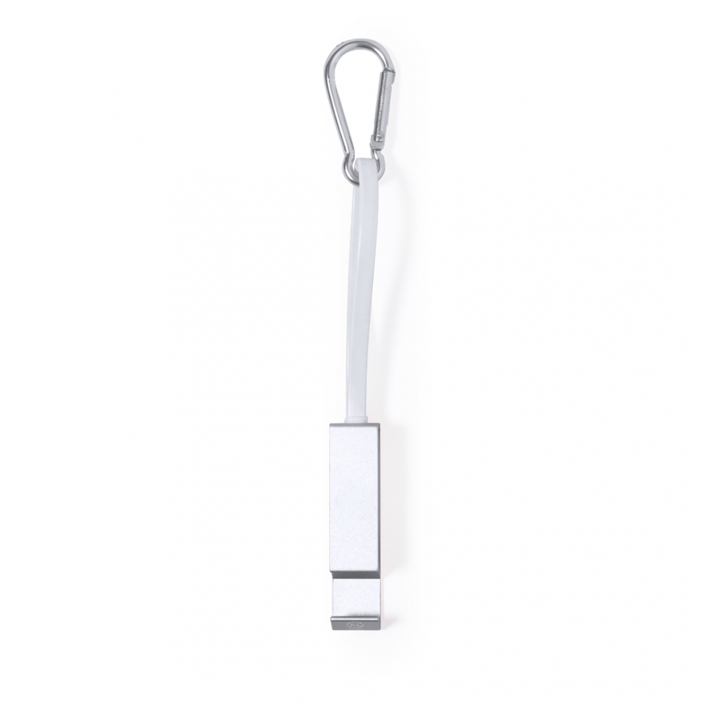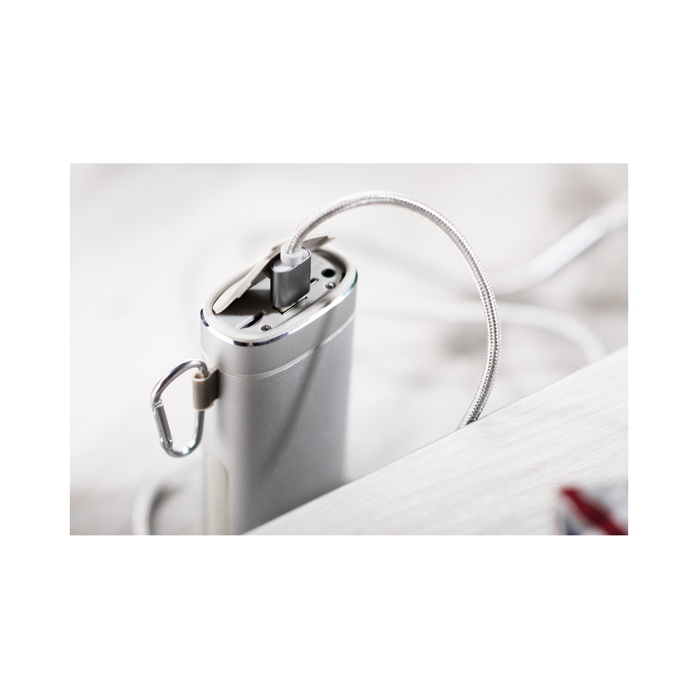 Multifunktions-Ladekabel aus recyceltem Aluminium und mit intelligentem Design zur bequemen Aufbewahrung der Ladekabel sowie zum einfachen Transport. Inklusive passendem Karabiner und Smartphone-Halter, mit Typ-C-Anschluss (Eingang und Ausgang) und dualem Micro-USB- / Lightning-Anschluss. Erhältlich in verschiedenen Metallic-Farben und mit Recycled Aluminium-Logo. Präsentiert in einer einzelnen recycelten Tasche. Recyceltes Aluminium ist ein Material mit nahezu unbegrenzten Recyclingmöglichkeiten, das seine ursprünglichen Eigenschaften beibehält und bei diesem Prozess weniger Energie verbraucht. GRS-Zertifizierung (Global Recycled Standard), die die r ...