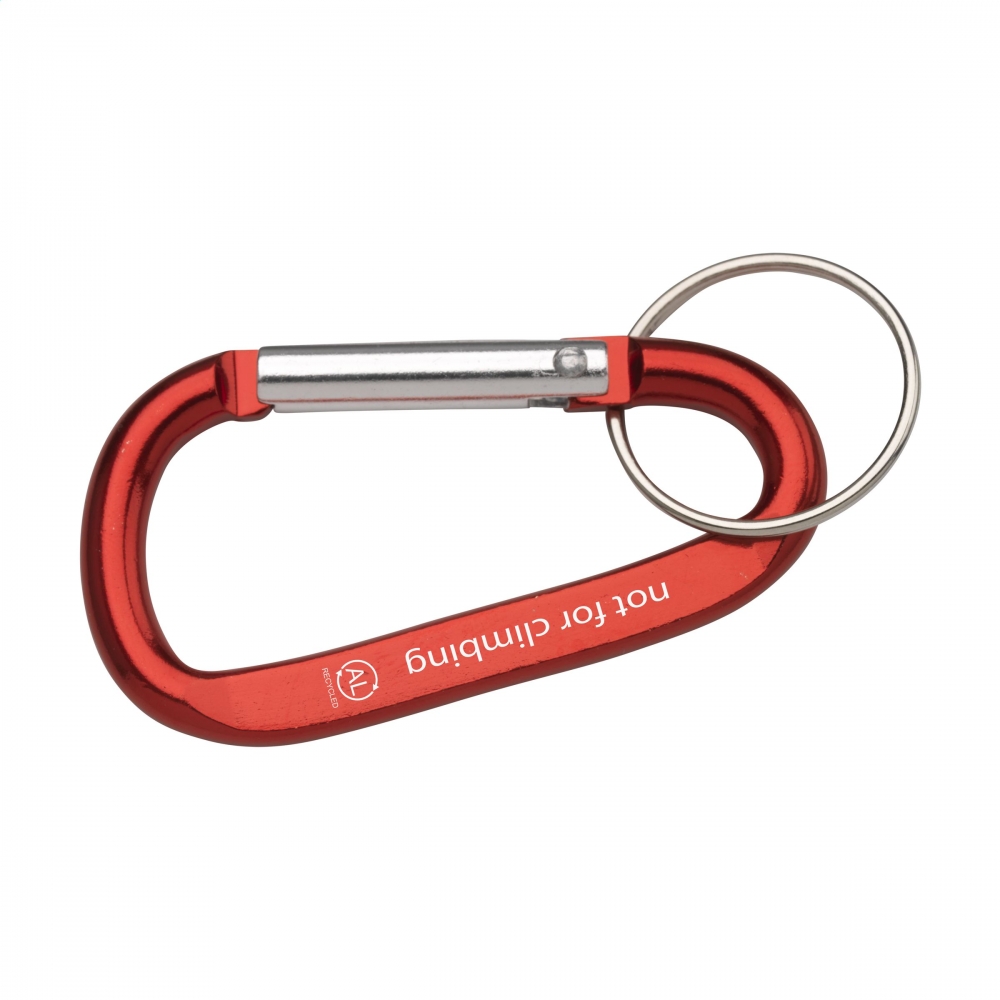 WoW! Karabiner aus recyceltem Aluminium mit Schlüsselring aus Metall (nicht verwendbar zum Klettern). GRS-zertifiziert. Gesamtes recyceltes Material: 81%. Durch die Verwendung von recyceltem Aluminium werden bei der Herstellung dieses Produkts weniger neue Rohstoffe verwendet. Das bedeutet weniger Energieverbrauch und weniger Wasserverbrauch.