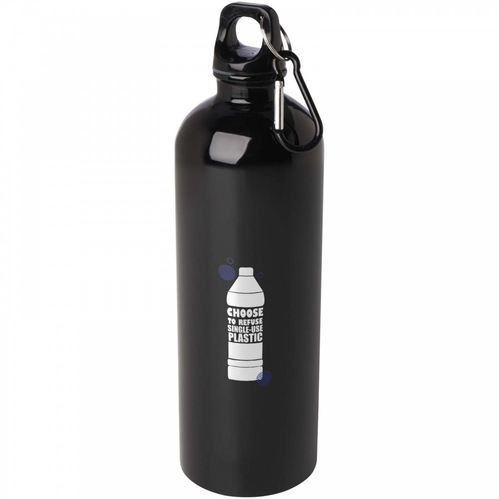 Flasche mit 800 ml Kapazität. Hergestellt aus strapazierfähigem und nachhaltigem recyceltem Aluminium. Mit schwarzem Schraubverschluss und passendem Karabiner für einfachen Transport. Körper mit mattierter Oberfläche. BPA-frei. Mit dem Markenzeichen Recycled Aluminium. Recyceltes Aluminium ist ein Material mit nahezu unendlichen Recyclingmöglichkeiten, ohne seine ursprünglichen Eigenschaften zu verlieren und verbraucht weniger Energie in diesem Prozess.