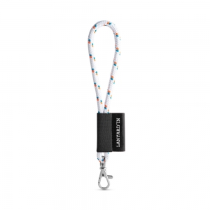 Veredelbares Lanyard aus Polyamide. Erhältlich in 12 Standardfarben. Dieses kurze NAUTIC Lanyard enthält folgendes Zubehör und Extras: Gummiband in schwarz, Sublimationsetikett 43 x 15 mm und einen kleinen Karabiner 9 mm. ø7 x 150 mm
