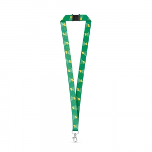 WoW! Lanyard aus RPET: aus recycelten PET-Flaschen hergestellt. Mit Metallkarabiner und Sicherheitsverschluss.