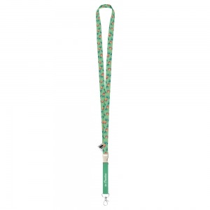 Individuelles Lanyard aus RPET mit 2 Metallkarabinern und Panikverschluss. Der Preis ist inkl. Sublimationsdruck auf beiden Seiten. Mindestmenge: 100 Stk.