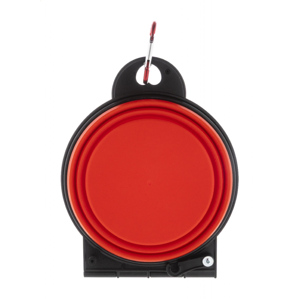 Faltbarer Hundenapf aus strapazierfähigem TPE mit zwei 450-ml-Fächern und farblich passendem Aluminiumkarabiner.