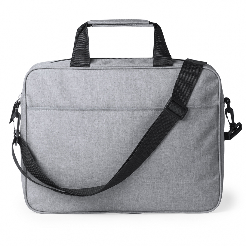 Dokumententasche mit Reißverschluss in elegantem 600D Polyester in Grau. Außentasche mit Klettverschluss und komfortable verstärkte Griffen sowie verstellbarer Schultergurt mit Befestigungskarabiner. Zudem mit Befestigungsgurt auf der Rückseite für Anbringung an einem Trolley.