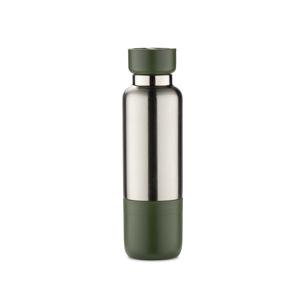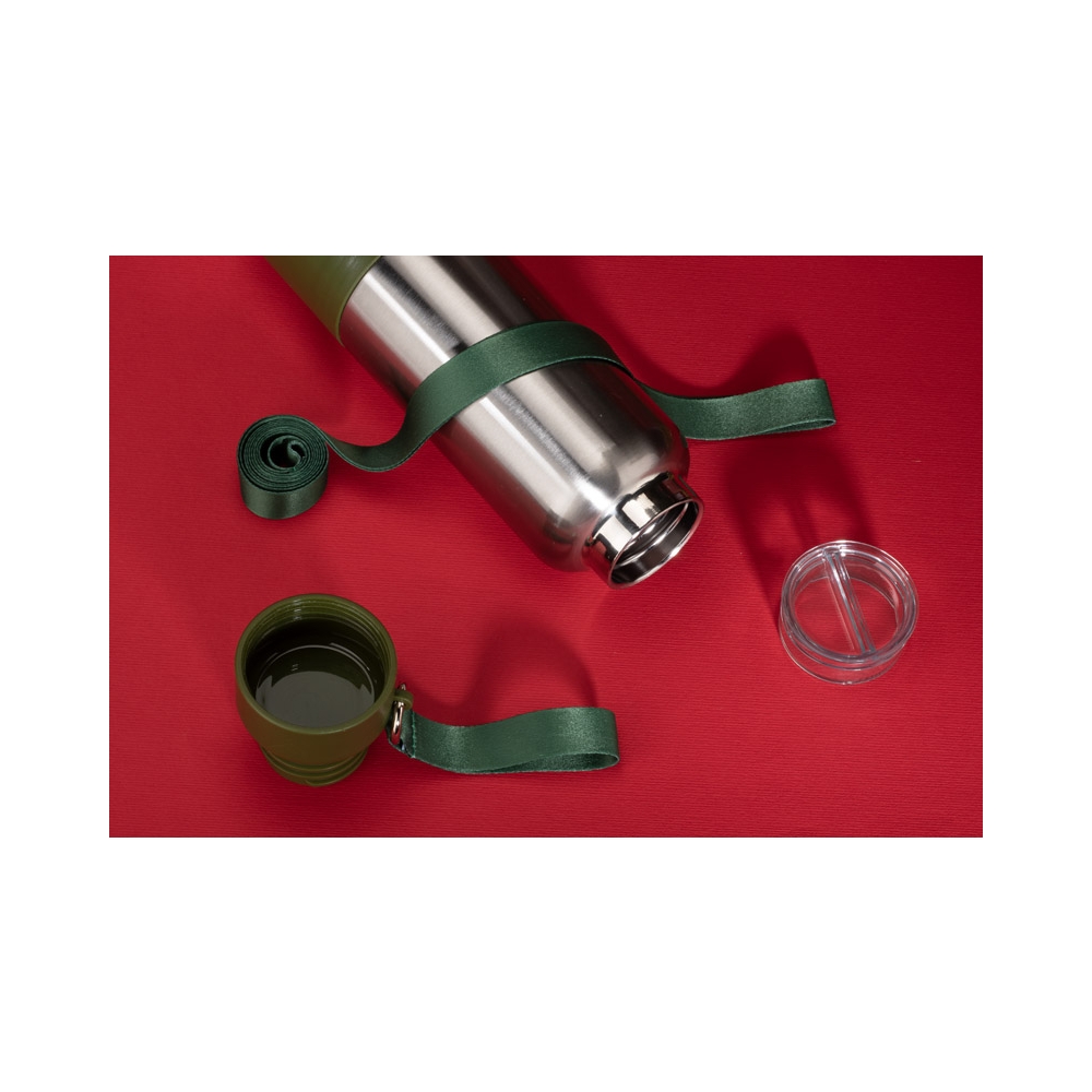 Sportflasche aus Edelstahl (90% recycelt) mit vakuumisolierter Doppelwand und Pulverbeschichtung - für mehr Haltbarkeit und Widerstandsfähigkeit. Der Deckel hat einen Griff und einen Karabiner für den einfachen Transport. Großes Fassungsvermögen von bis zu 1200 mL. Wird in einer Geschenkbox aus Kraftpapier geliefert. ø70 x 210 mm