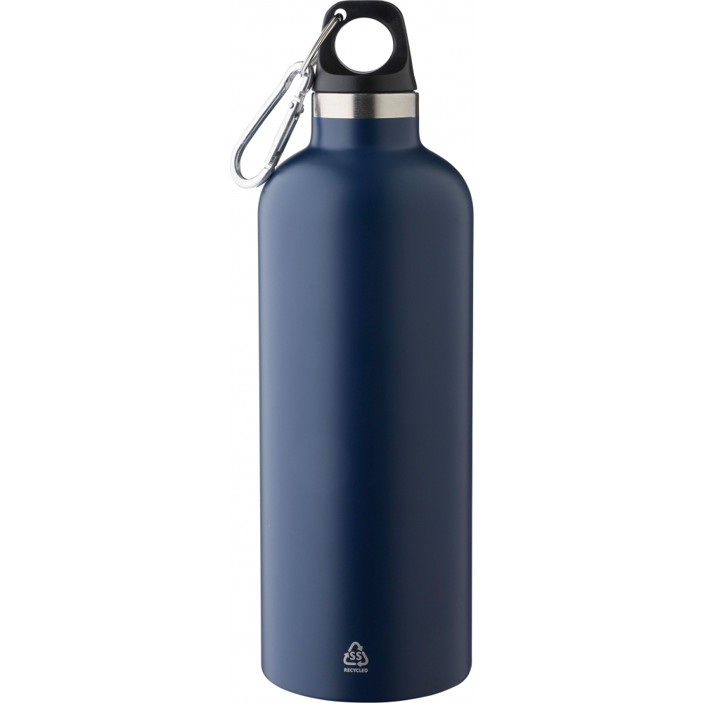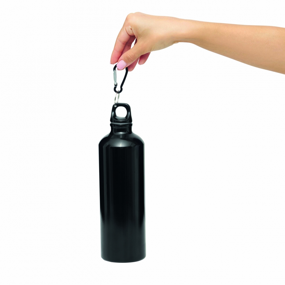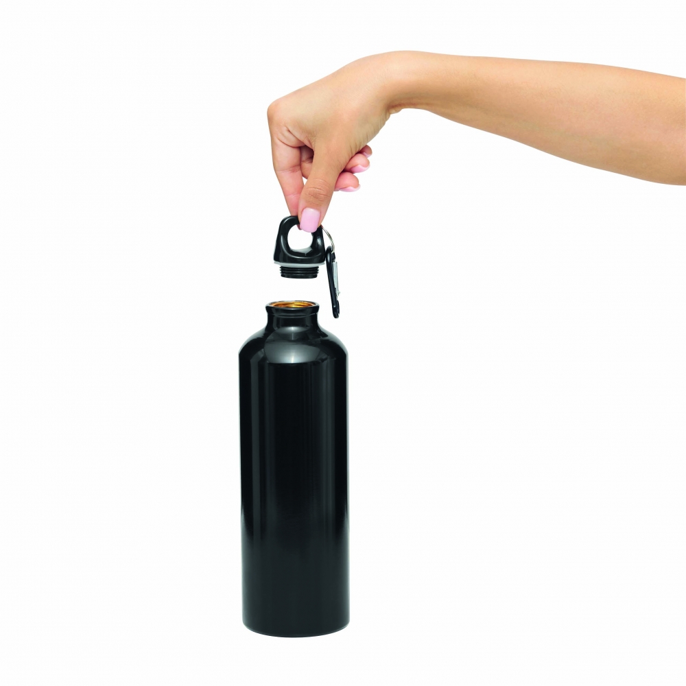 Artikel-Nr: KTO21550009000Flasche mit 800 ml Kapazität. Hergestellt aus strapazierfähigem und nachhaltigem recyceltem Aluminium. Mit schwarzem Schraubverschluss und passendem Karabiner für einfachen Transport. Körper mit mattierter Oberfläche. BPA-frei. Mit dem Markenzeichen Recycled Aluminium. Recyceltes Aluminium ist ein Material mit nahezu unendlichen Recyclingmöglichkeiten, ohne seine ursprünglichen Eigenschaften zu verlieren und verbraucht weniger Energie in diesem Prozess.