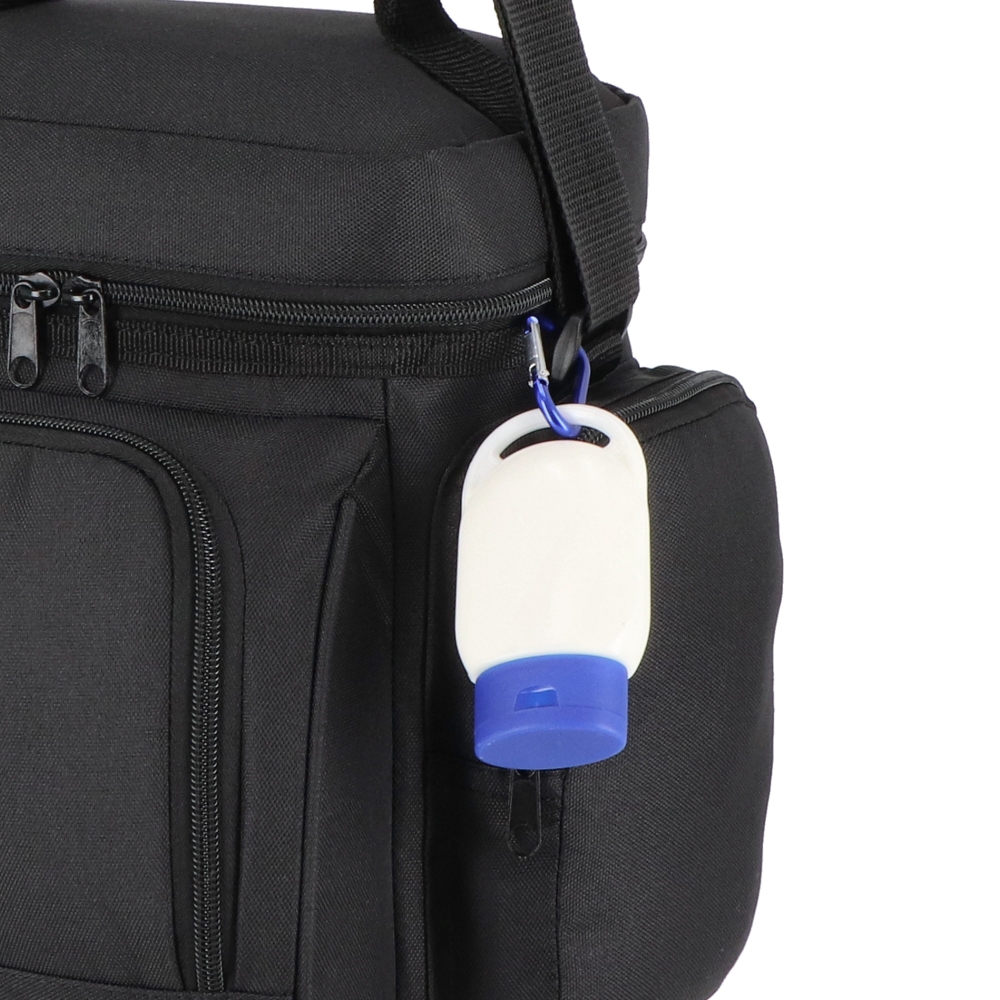 Artikel-Nr: MCM6791666Handwaschgel mit einem Füllvermögen von 30 ml in einem Fläschchen mit Karabinerhaken, perfekt für unterwegs. Ihre Werbung wird auf das weiße Label auf der Außenseite gedruckt.