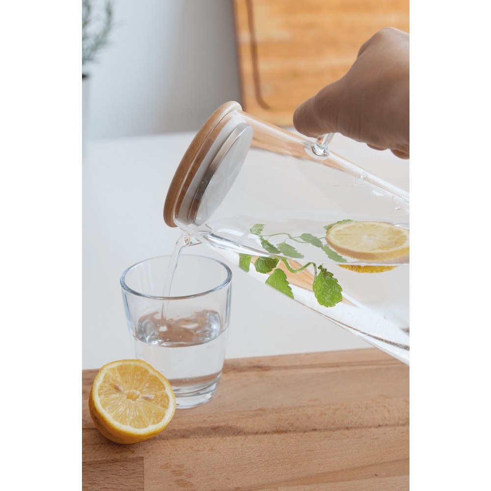 Artikel-Nr: CLP107904Eine Karaffe aus Glas mit Korkkappe. Zum servieren von Wasser, Saft oder alkoholischen Getränken. Mit großzügiger Öffnung zum Hinzufügen von Eiswürfeln. Einfach zu reinigen. Fassungsvermögen 1.000 ml. Die Kappe wird separat geliefert.