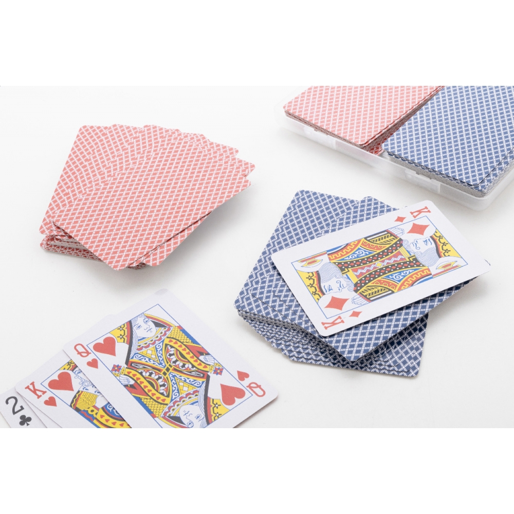 Artikel-Nr: KTO11022000000Französisches Deck aus widerstandsfähigem laminiertem Papier. Es enthält 54 Spielkarten, präsentiert in einem individuellen Etui mit transluzenter Oberfläche und mit Sicherheitsverschluss.