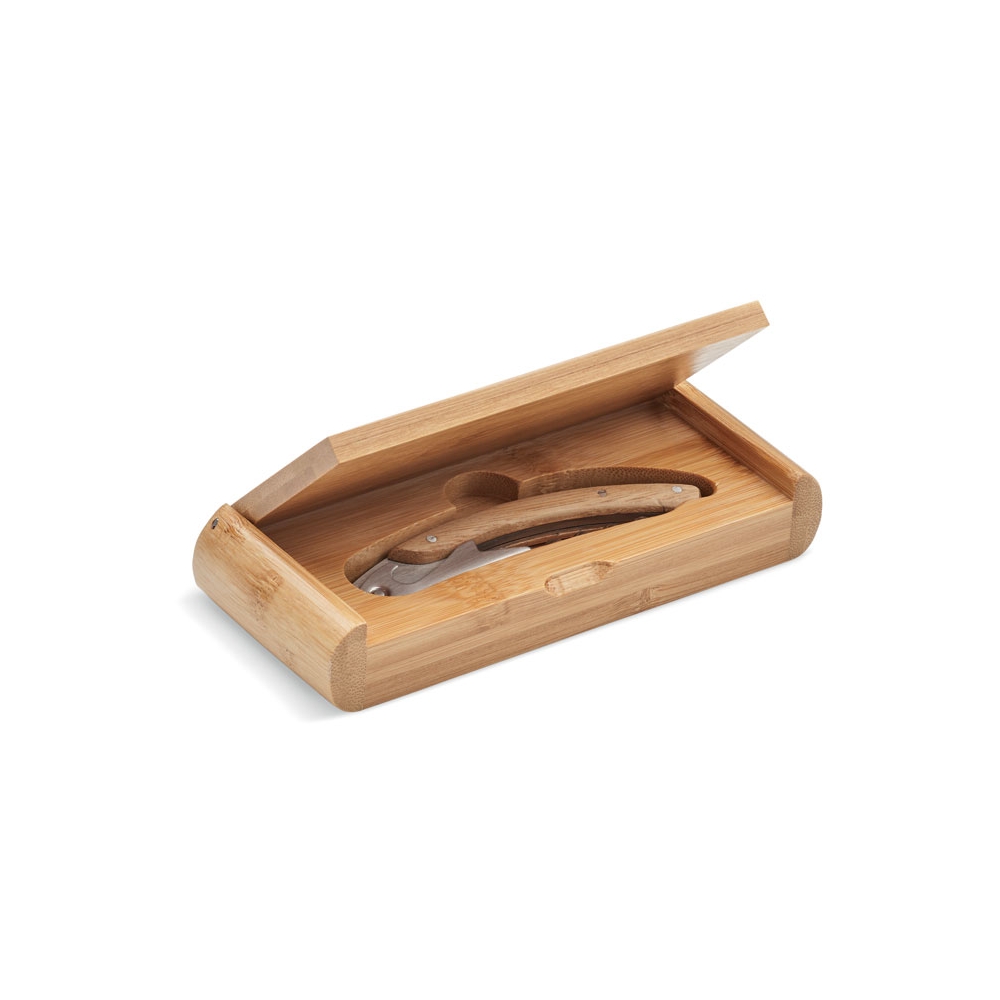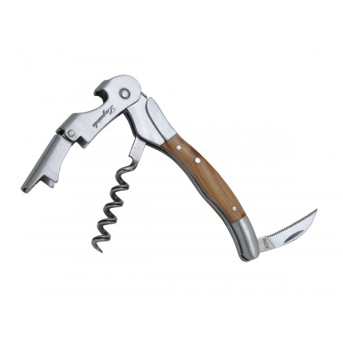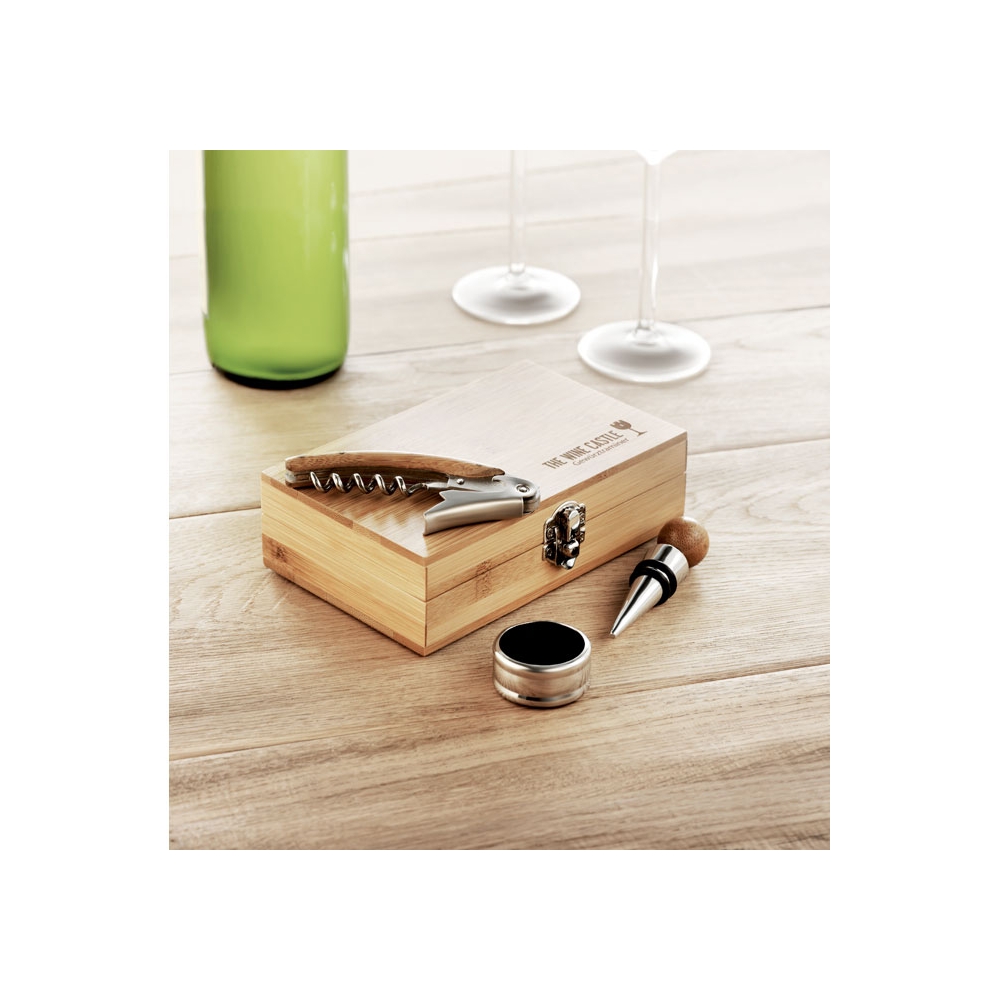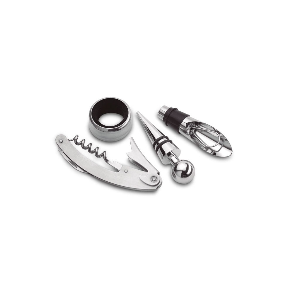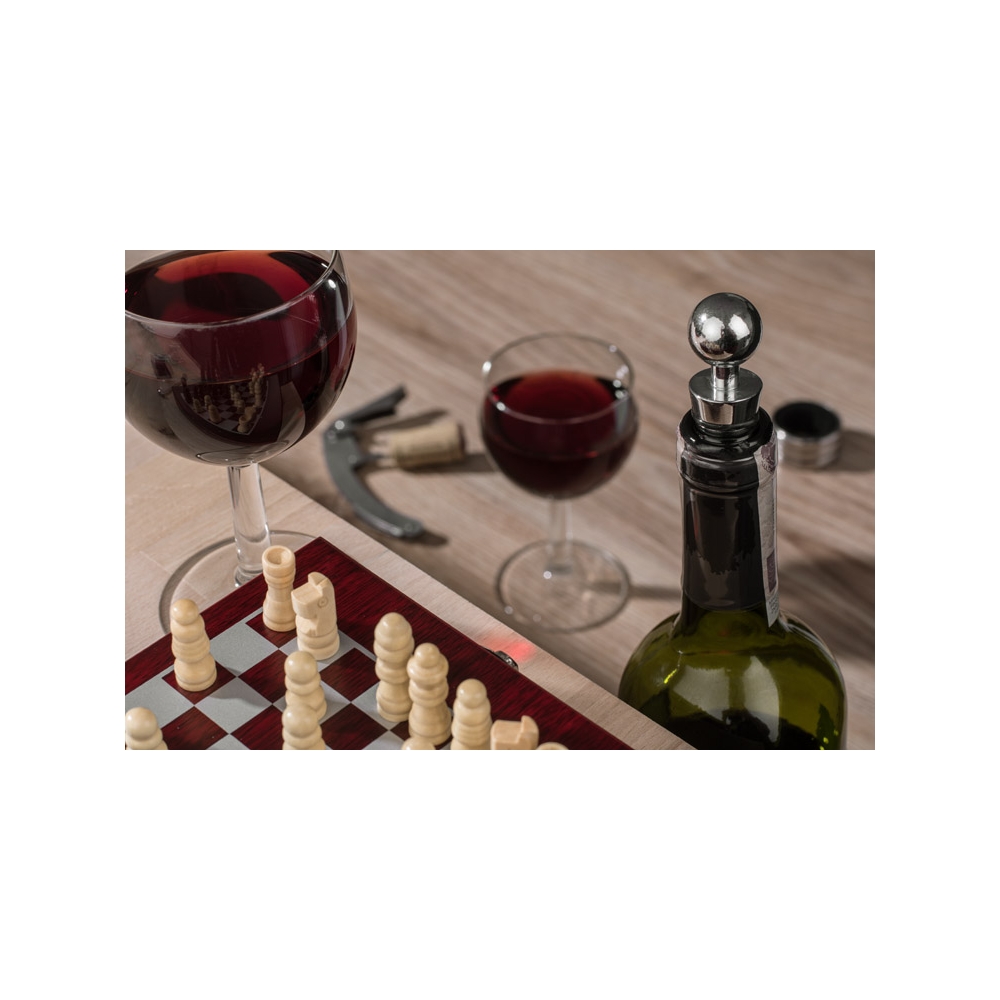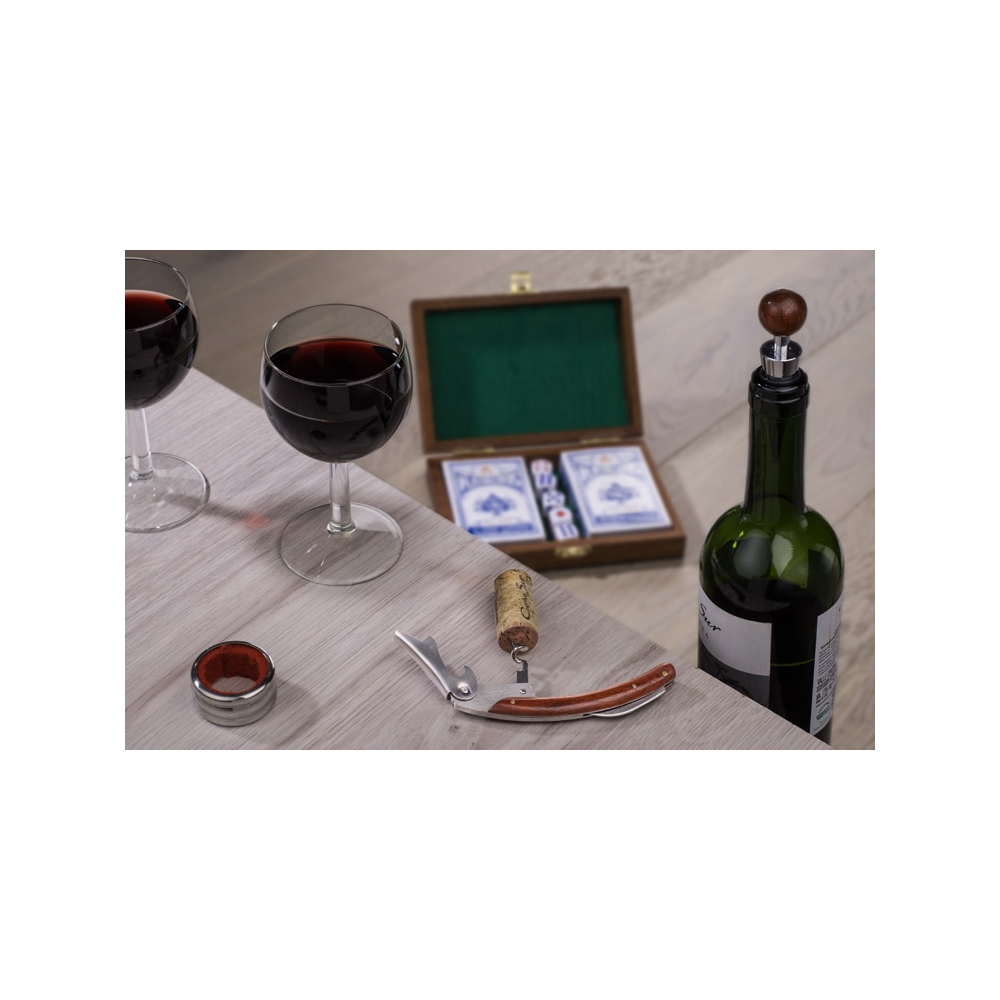 Artikel-Nr: OCBMO9523-40''Weinfass'' aus Holz mit 4 Accessoires: Kellnermesser, Flaschenverschluss, Weingießer und Folienschneider.