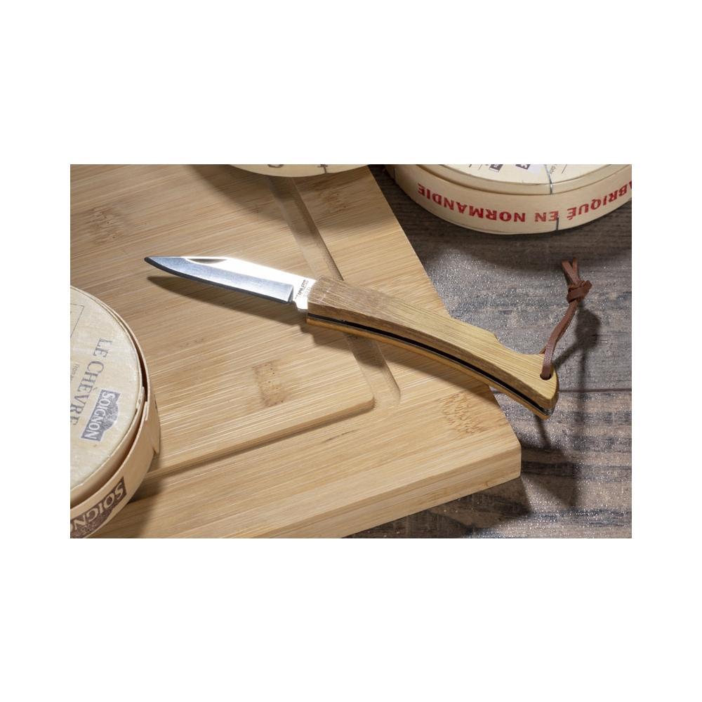 Klappmesser aus Edelstahl mit Griff aus Akazienholz. Klingenlänge: 6 cm.