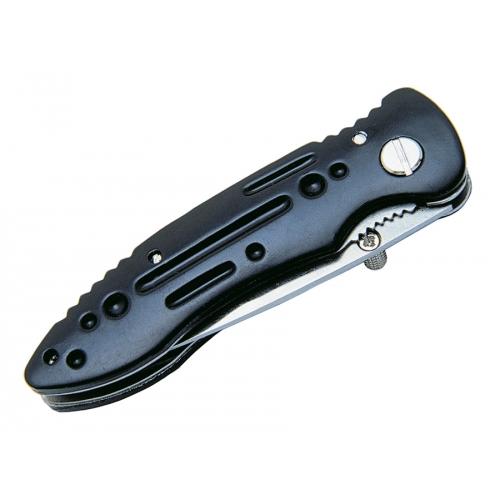 Artikel-Nr: 688ECO021Taschenmesser aus Edelstahl, vorne dünn und spitz (für präzise Schnitte), hinten fein gezahnt (für schwer schneidbare Materialien). Lässt sich einhändig öffnen und schließen, dank einfach handhabbarer Sicherheitssperre. Griff mit schwarzer Kautschukverkleidung. Gürtelclip.