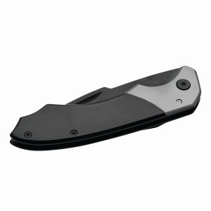 Klappmesser mit schwarzer Klinge aus 420er Edelstahl. Einhandöffnung für Links-und Rechtshänder. Sicherheitssperre vom Typ Liner Lock. Nutzbare Klingenlänge: 9 cm. Griff aus Edelstahl, ABS mit Gummieinlagen. Öse zum Anbringen eines Bandes am Griffende. Gürtelclip.