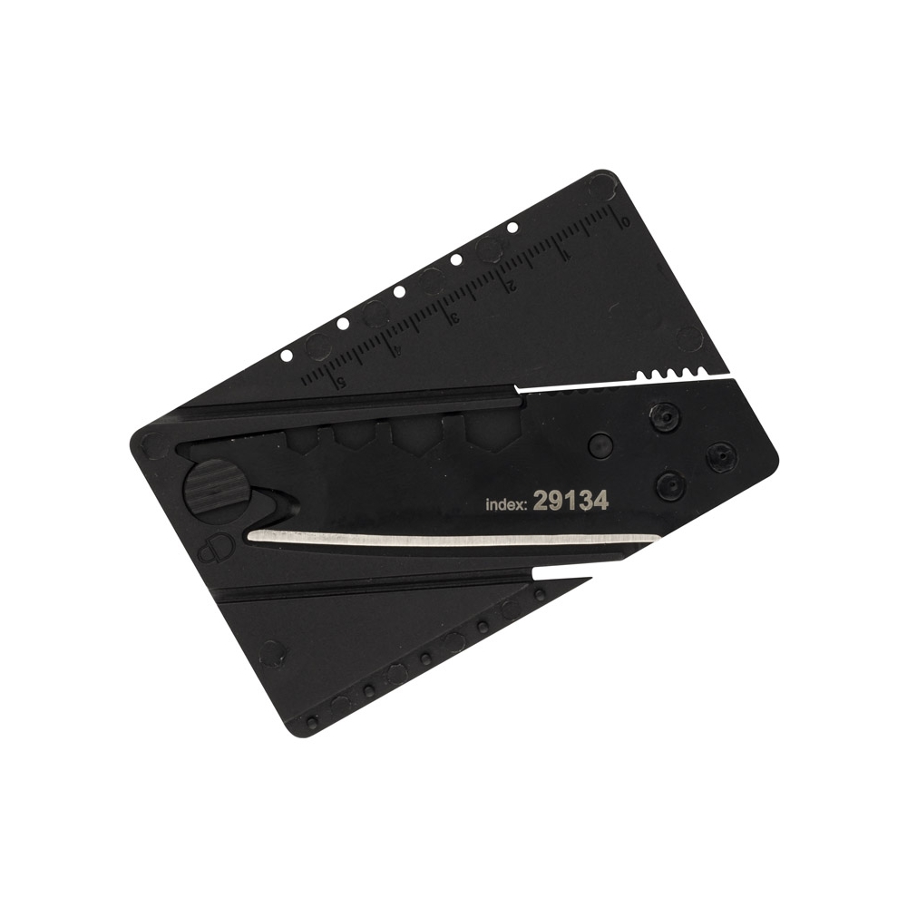 Das Klappmesser KLINGO ist eine Lösung für jede Situation, wenn das Messer gebraucht wird und man den Eindruck hat, dass es vergessen wurde. Aufgrund der Größe und Form einer Kreditkarte passt dieses Utensil in eine Brieftasche, wodurch es immer griffbereit zur Verfügung steht. Der durchdachte Aufbau ermöglicht das Einklappen der Klinge in wenigen Sekunden. Funktionen: Lineal, Messer, Schlüssel ( 4 Größen), Dosenöffner, Drahtmeißel.