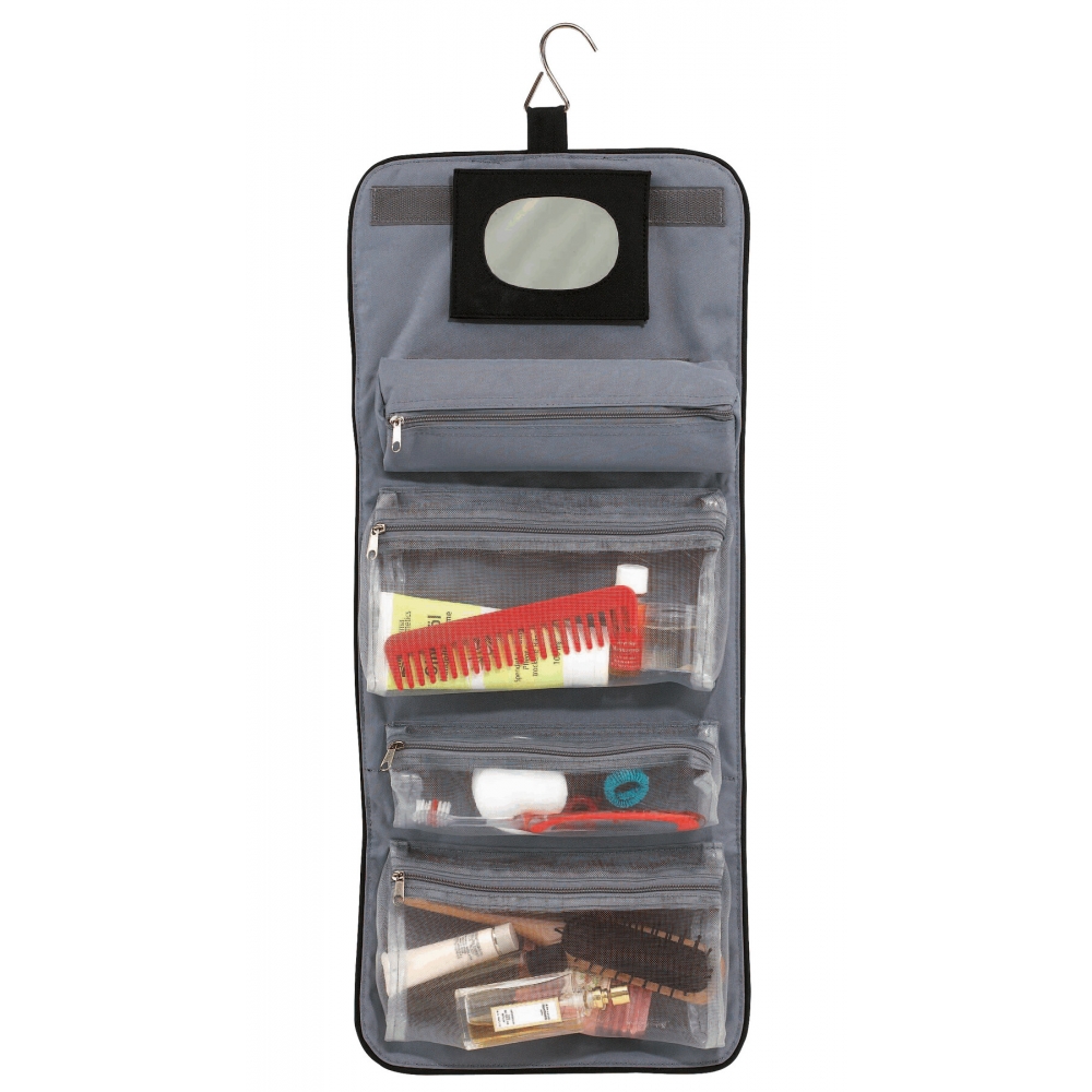 Artikel-Nr: XND7800311680D Nylon Kosmetiktasche mit diversen Einsteckfächern und einem Haken zum Aufhängen.