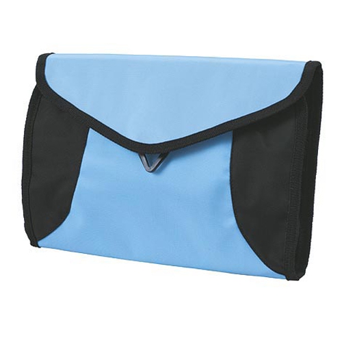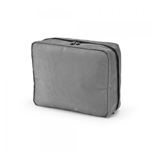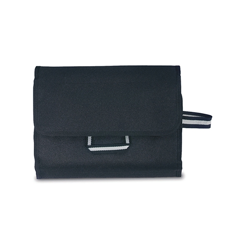 Rolltasche aus 210D RPET zur Aufbewahrung von Kabeln. 3 Reißverschlussfächer mit REPT-Netz. Auch ideal als Kosmetiktasche.