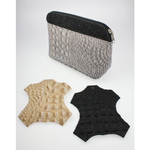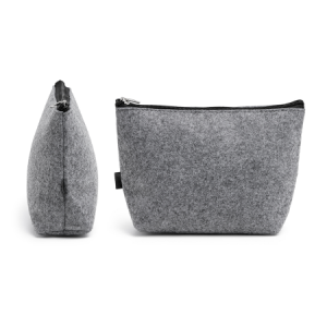 Kosmetiktasche aus RPET-Filz mit Reißverschluss. Mit RPET-Label.