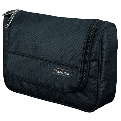 Travelmate® Kulturtasche L, großes Hauptfach mit vielen Aufbewahrungsfächern und Aufhängefunktion, aufklappbar, seitlicher Tragegriff mit herausnehmbarer transparenter Beutel (geeignet für die Mitnahme von Flüssigkeiten im Flugzeug), hochwertiges Nylon-Material, schwarz, ca. 26 x 20 x 9,5 cm, VE 12 Stück