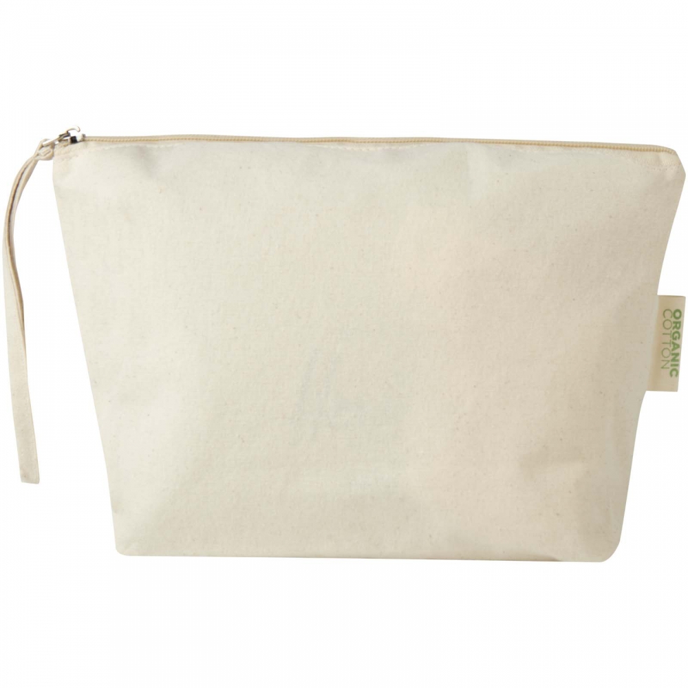 Kosmetiktasche aus Bio-Baumwolle 180g / m2 und in einem natürlichen Farbton. Reißverschluss mit passendem Zugband und Öko-Etikett auf dem Außenetikett. Inklusive Hangtag aus recyceltem Karton mit Öko-Label.