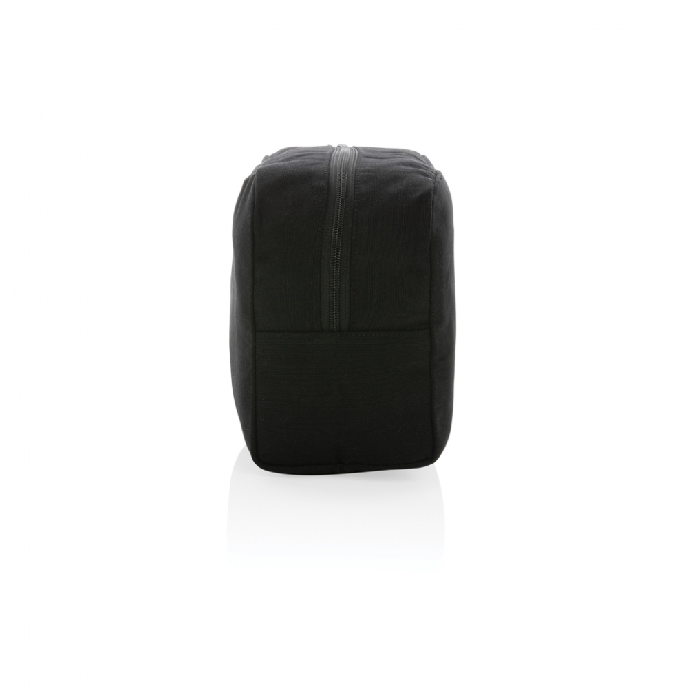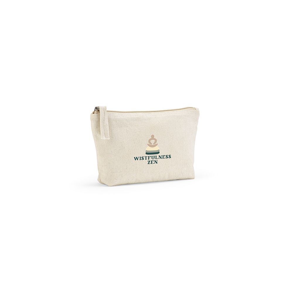Kosmetik- oder Zubehörtasche aus recyceltem Material (70 % recycelte Baumwolle, 30 % RPET-Polyester) mit farblich passendem Reißverschluss-Puller. 320 g / m². Artikel kann nach dem Bedrucken schrumpfen.
