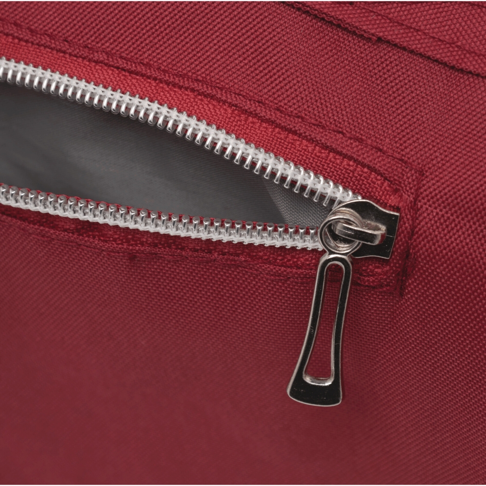 Elegante Tasche mit passendem Kosmetiktäschchen aus strapazierfähigem 600D-Polyester. Hauptfach und Kosmetiktasche innen mit Reißverschluss. Erhältlich in einer Vielzahl von Farben, mit passenden mittelgroßen Griffen (56 x 3 cm).