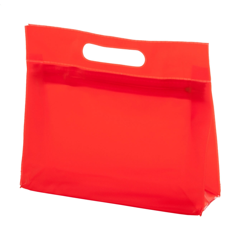 Vielseitig verwendbare Kulturtasche aus resistentem, halbtransparentem EVA-Kunststoff in glänzenden Farben. PVC-frei. Mit transparentem Fenster, farblich passendem Reißverschluss und Hitzeversiegelung. Zugband in passender Farbe.