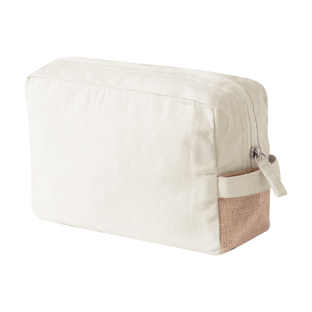 Kosmetiktasche aus Bio-Baumwolle mit einem Gewicht von 175g / m2 und in einem natürlichen Farbton. Reißverschluss mit passendem Zugband und Öko-Etikett auf dem Außenetikett. Inklusive Hangtag aus recyceltem Karton mit Öko-Label.