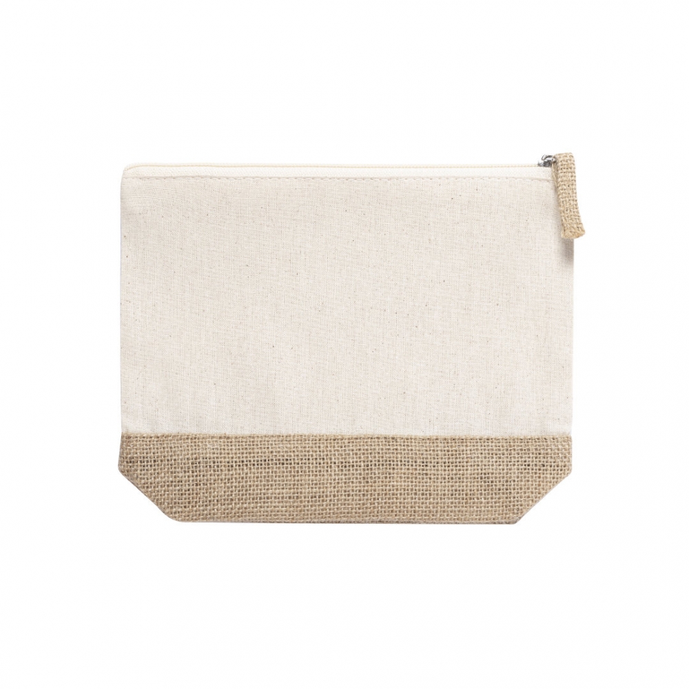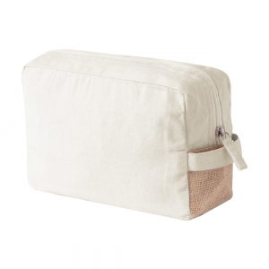 Reißverschluss-Kosmetiktasche aus Baumwolle und laminierter Jute.