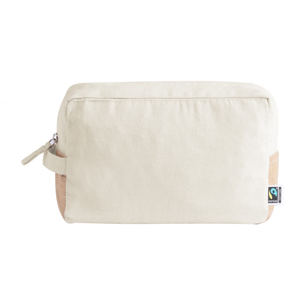 Kosmetiktasche aus Fairtrade-Baumwolle und laminierter Jute mit Reißverschluss und Fairtrade-Label. Material: 100 % Fairtrade-Baumwolle, 180 g / m².