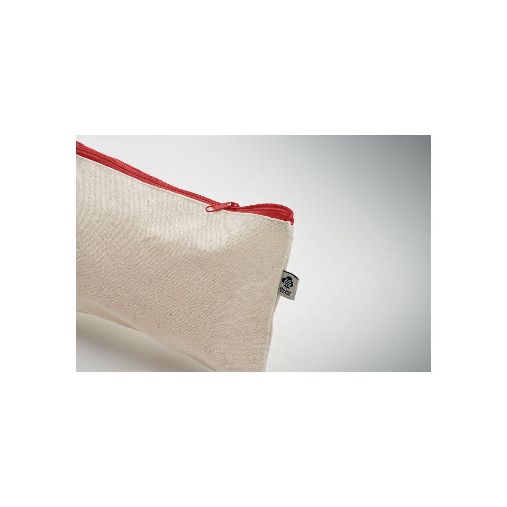 Reißverschluss-Kosmetiktasche aus recycelter Baumwolle. Inkl. Recycelte-Baumwolle-Label.
