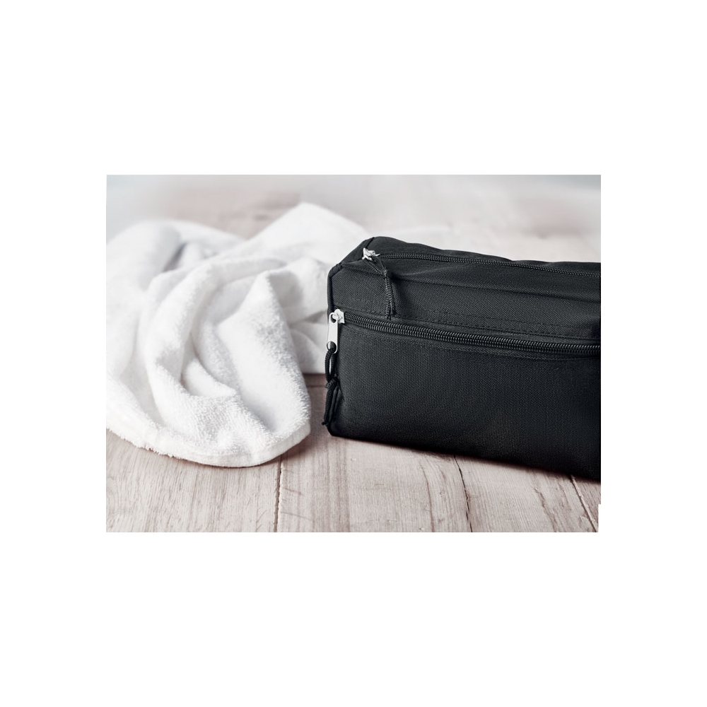 Reissverschluss-Kosmetiktasche aus 600D RPET-Polyester.