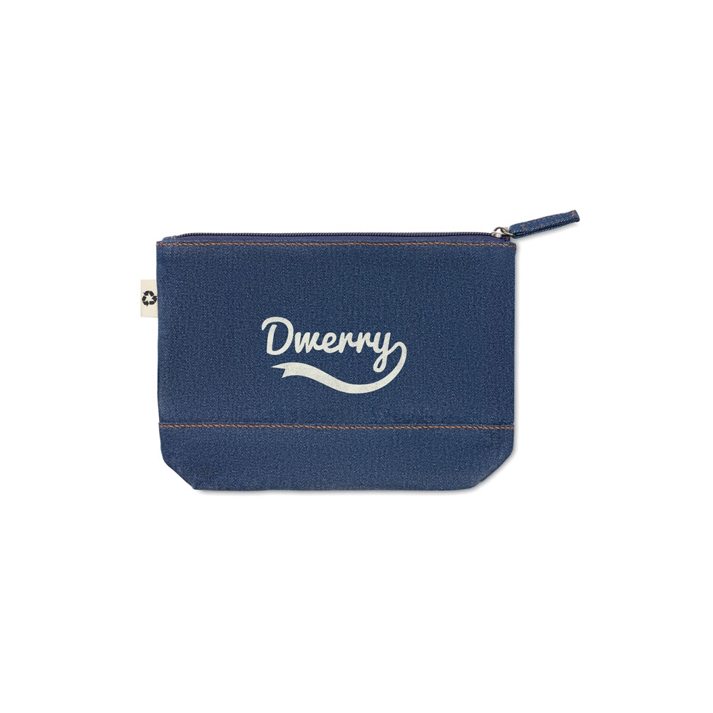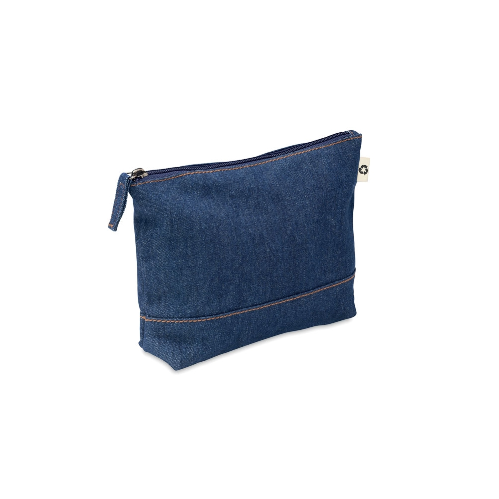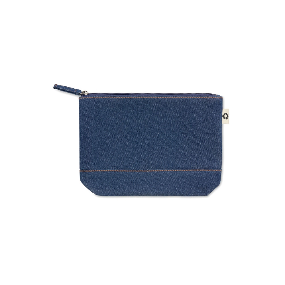 Denim Kosmetiktasche mit Reißverschluss. 50% recycelter Baumwoll-Denim und 50% Baumwolle. 250 g / m².