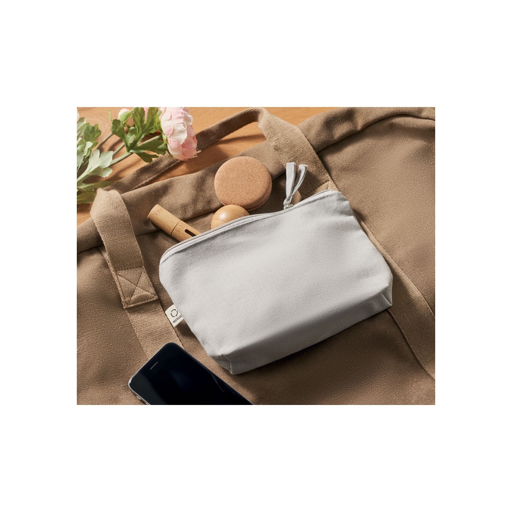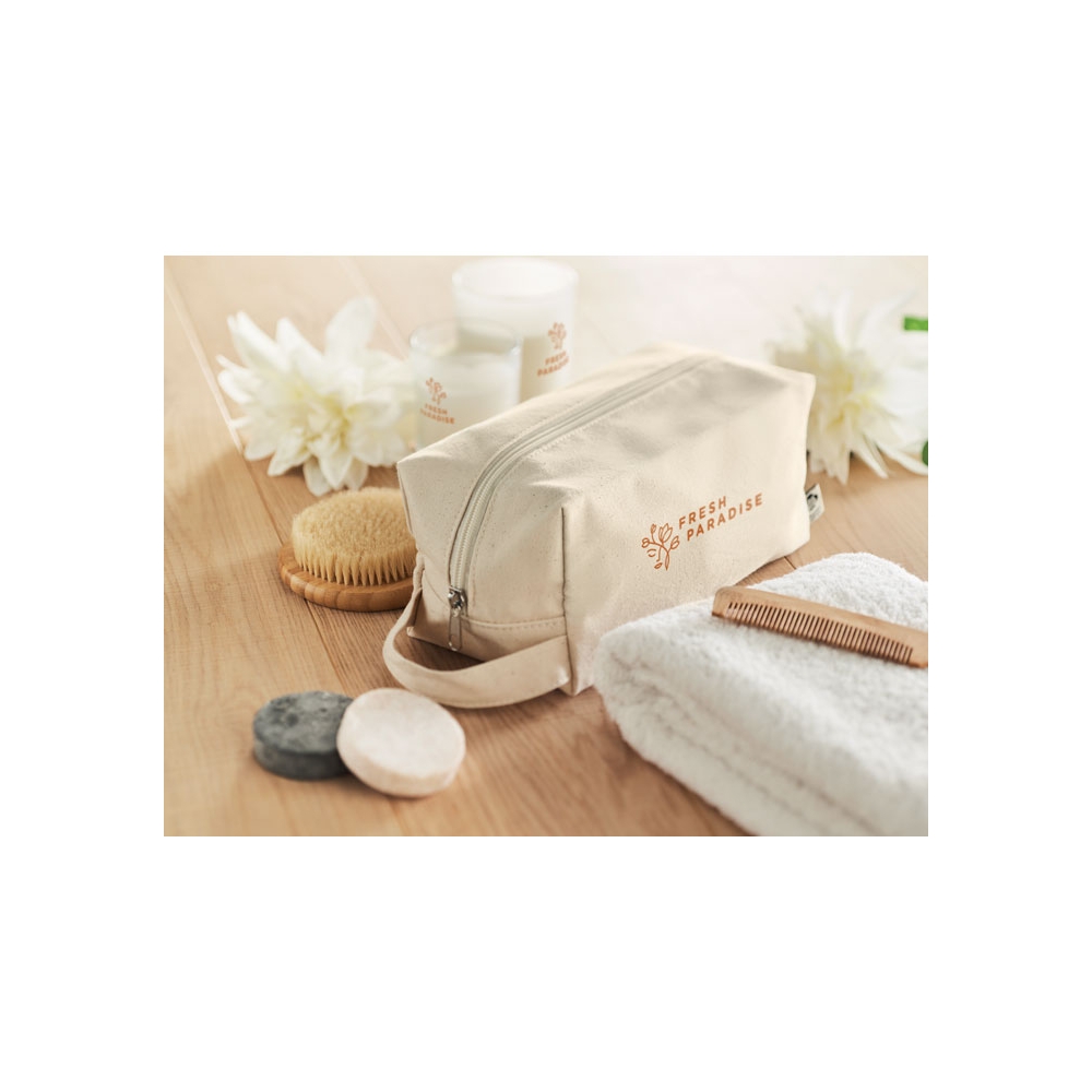 Artikel-Nr: KTO21047011000Kosmetiktasche aus recycelter Baumwolle. Hauptfach mit Reißverschluss und Griff in der gleichen Farbe wie der Boden. Erhältlich in vielen leuchtenden Farben, mit Etikett für recycelte Baumwolle.