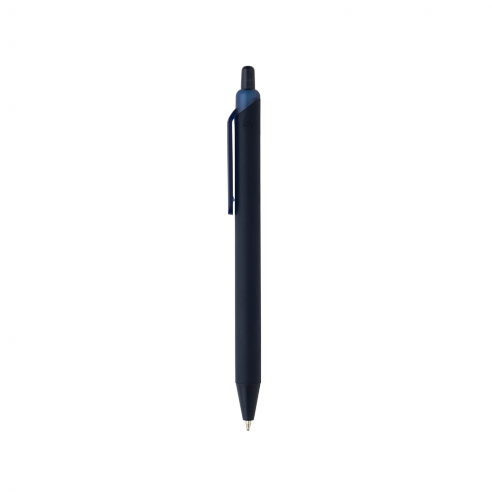 Artikel-Nr: XND6113404Der Tide Smooth Touch Stift aus GRS zertifiziert recyceltem ABS besticht durch sein einzigartiges Design, das an einen Kugelschreiber mit Krawatte erinnert, wenn man sich Clip und Schaft genau ansieht. Gefertigt aus 91% recyceltem ABS, kombiniert dieser Stift Haltbarkeit mit Stil. Der glatte, gummierte Silikongriff um den Schaft sorgt für zusätzlichen Komfort und ein erstklassiges Schreiberlebnis. Die mattierte Beschichtung des Schaftes, des Clips und der Spitze verleiht ihm einen eleganten Touch. 1200m blauschreibende Mine Der Stift funktioniert mit einem Klick-Mechanismus für eine einfache Bedienung.