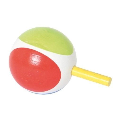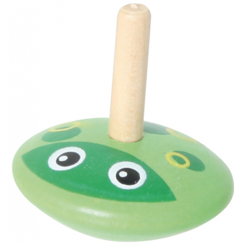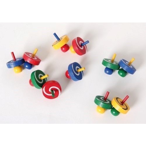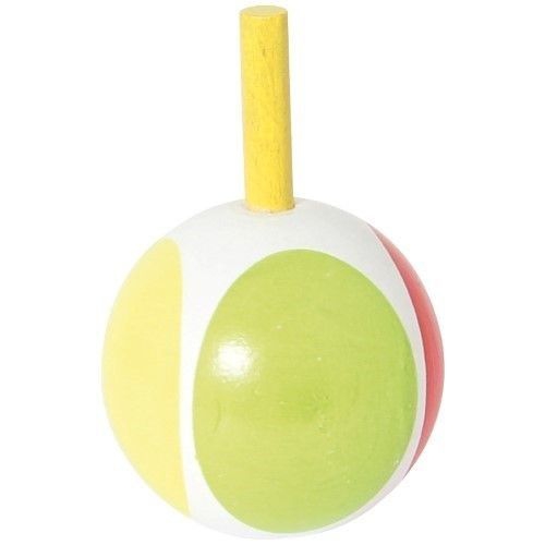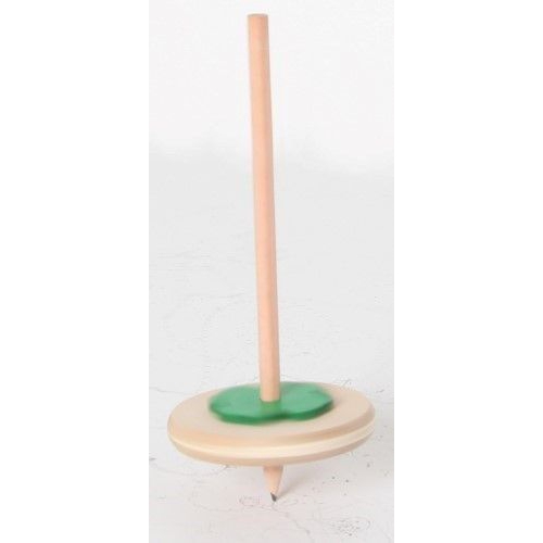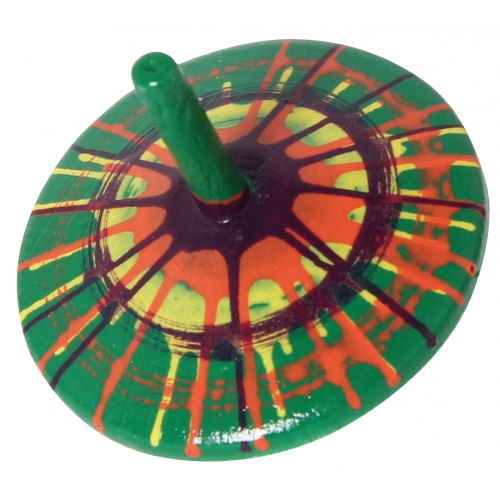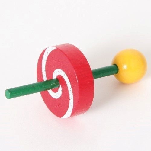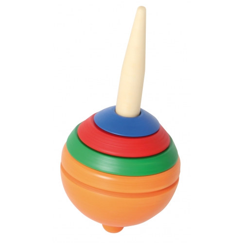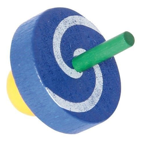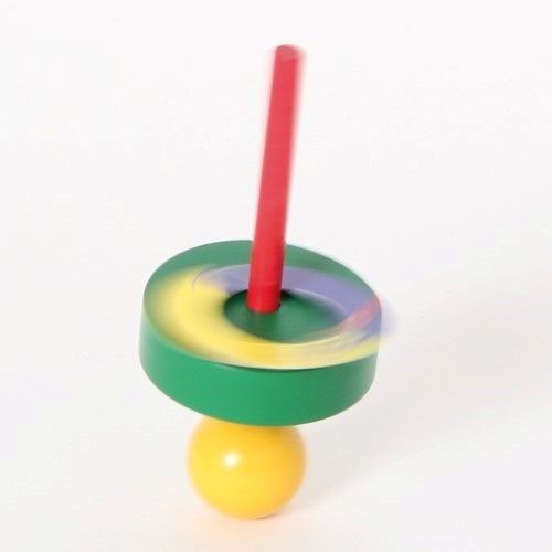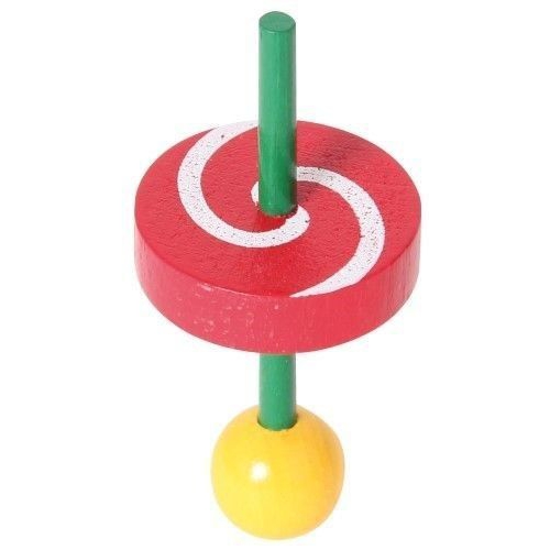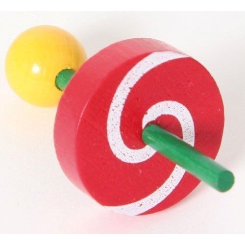 Der Kreisel aus bunten Holzteilen taumelt leicht, anstatt sich ruhig zu drehen. Das kommt daher, dass er nicht auf einer Spitze dreht, sondern auf einer runden Fläche. Verschiedene Farben sortiert. Achtung! Nicht geeignet für Kinder unter 36 Monaten.