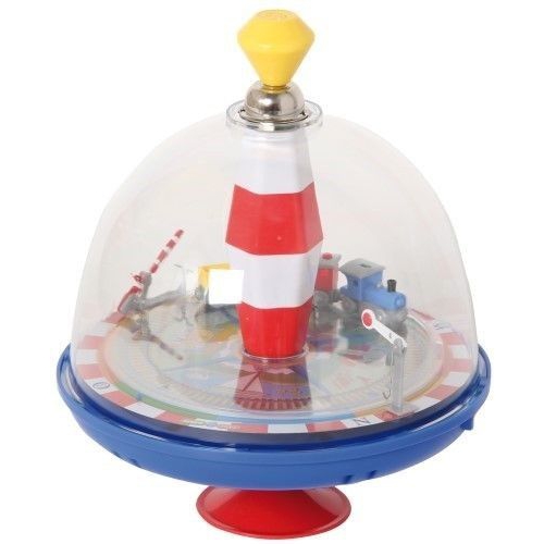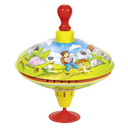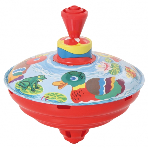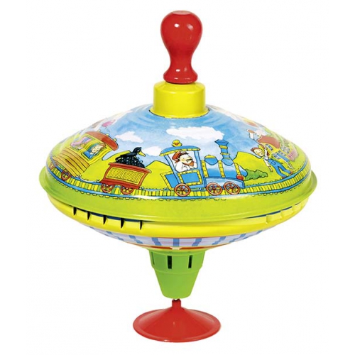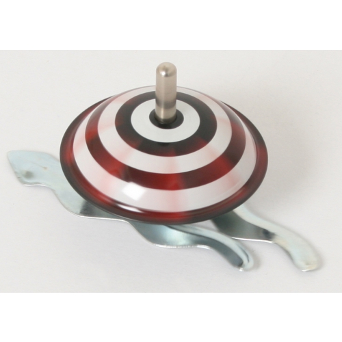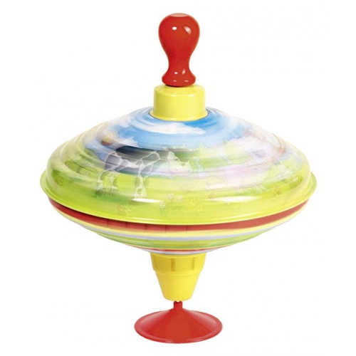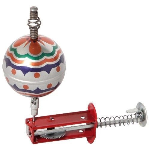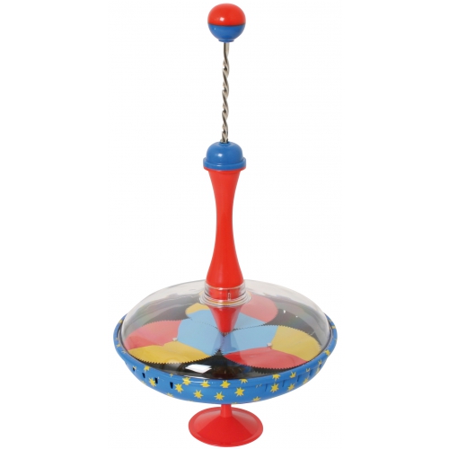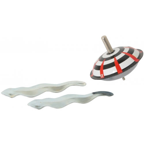 Lässt man den kleinen Blechkreisel mit Federmechanismus und Antriebshilfe auf den Boden fallen, springt er wieder hoch und kreiselt pfeifend superschnell. Ab 3 Jahren. Achtung! Nicht geeignet für Kinder unter 36 Monaten.