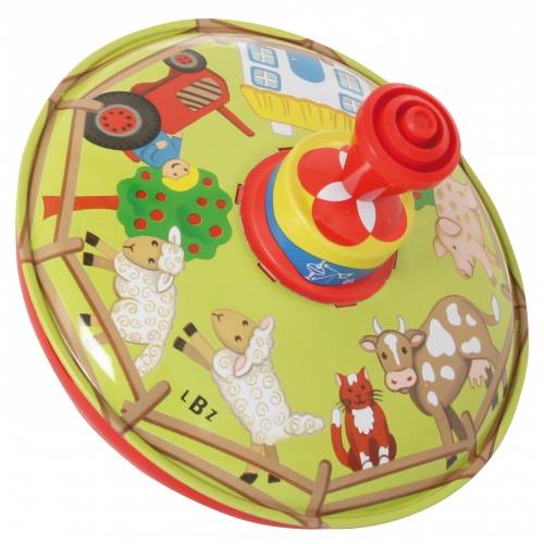 Dreht man den Kreisel, fährt der Traktor im Kreis herum, die Tiere bewegen sich und man hört realistische Bauernhofgeräusche. Inkl. 2 AA 1,5V Batterien.
