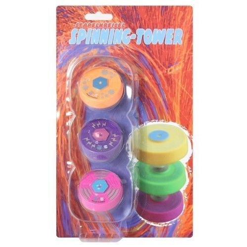 Drei hochwertige Kreisel im Set. Diese gilt es, auf Touren zu bringen und sie dann drehend aufeinander zu stapeln. Verschiedene Farbkombinationen sortiert. Achtung! Nicht geeignet für Kinder unter 36 Monaten.