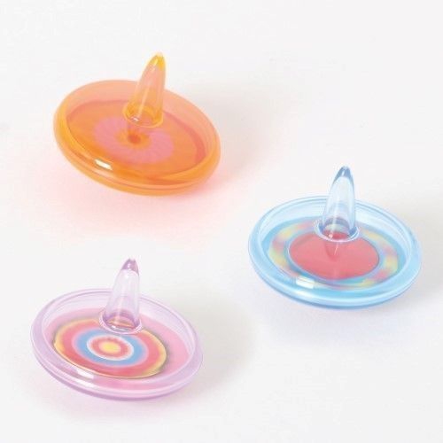 Zwölf Stück im Set. Die Kunststoffkreisel mit superkurzer Spitze kreiseln besonders lange und ganz flach auf dem Boden oder Tisch. Achtung! Nicht geeignet für Kinder unter 36 Monaten.
