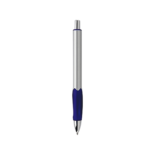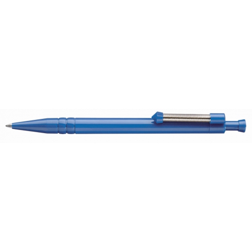 Blauschreibender Kugelschreiber mit mattmetallenem Clip.