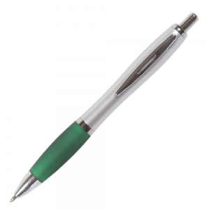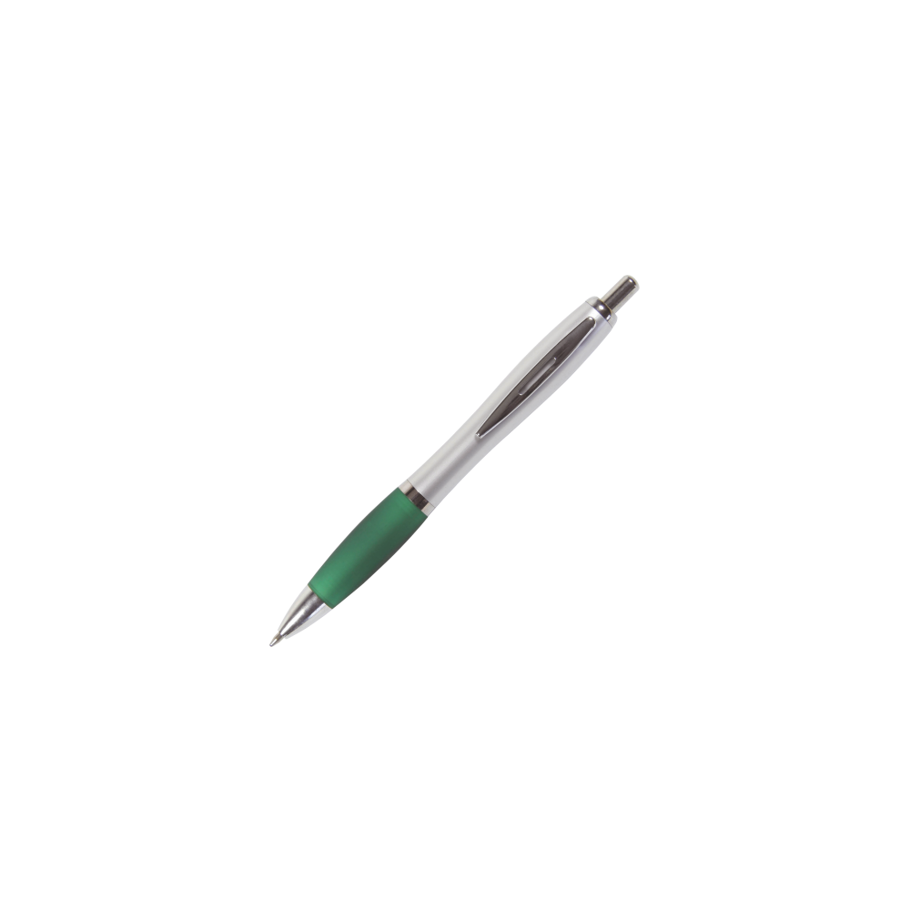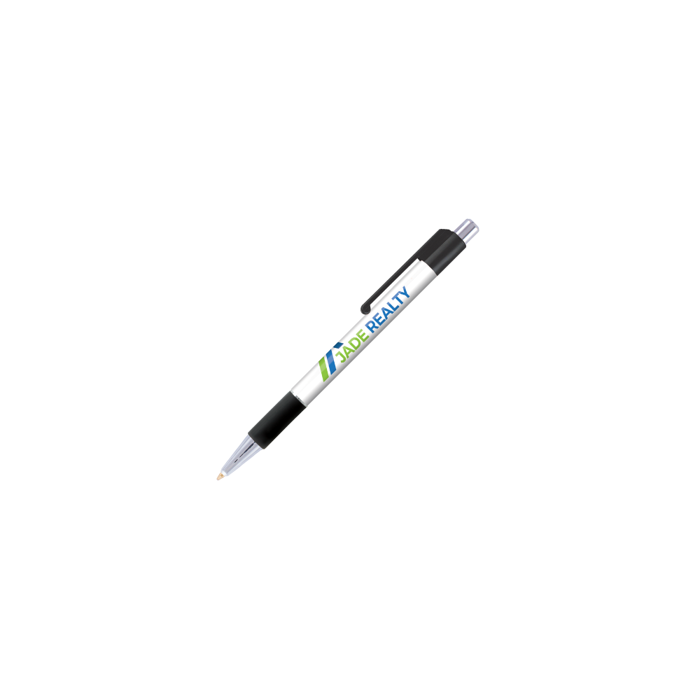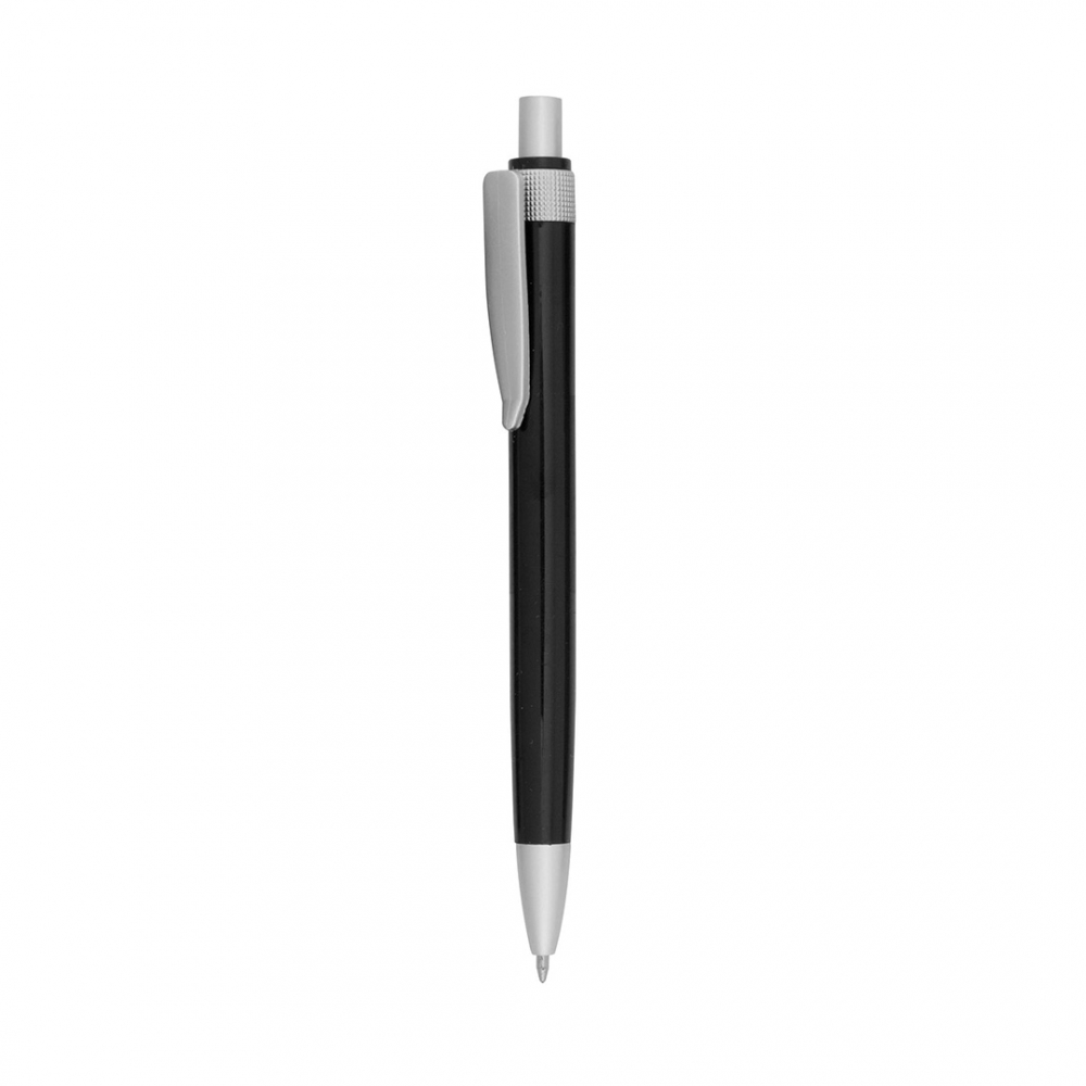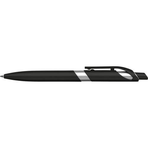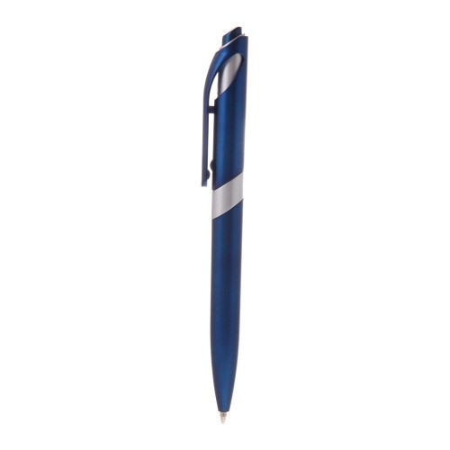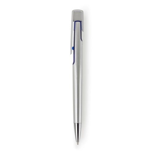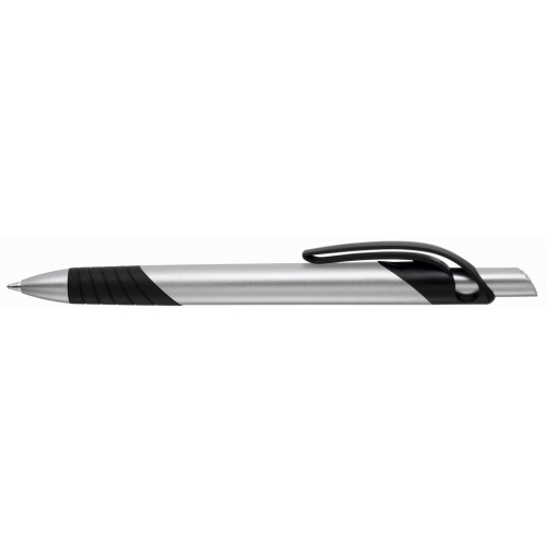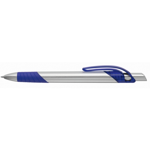Kugelschreiber mit blauschreibender Großraummine und silbernen Applikationen. Ihre Werbung drucken wir rechts vom Clip. Wir empfehlen einen Druck in silber.