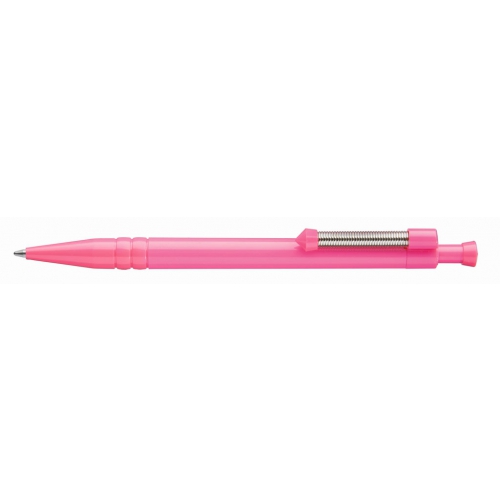 Wenn es um leichte Eleganz geht, reicht ihm keiner das Wasser. Wertig und harmonisch, setzt der Druckknopf in der Mitte einen dezenten Farbakzent. In der Ausführung mit transparentem Gehäuse (PTT) lieferbar in elf Standardfarben, Sondergehäusefarben ab 10.000 Stück. Vier Druckflächen für Werbeanbringungen stehen zur Verfügung. Der Druckknopf lässt sich farblich vom Gehäuse absetzen. Das hochwertige neue FLOATING BALL® Schreibsystem sorgt für ein noch weicheres Schreibgefühl.