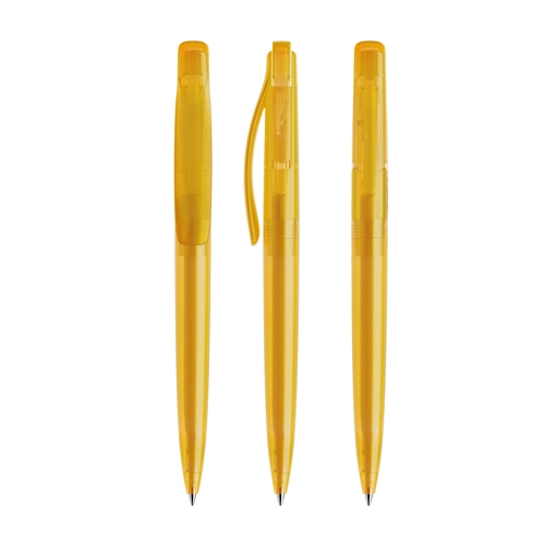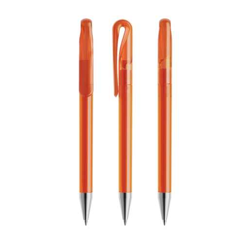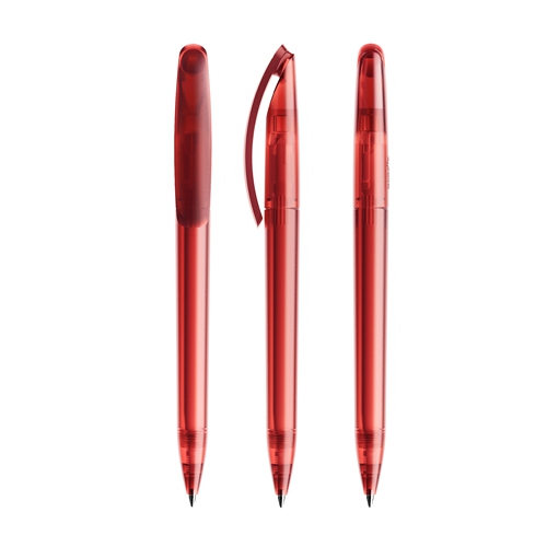 Mit seinem schlanken Gehäuse und der formschönen Kappe, die schwungvoll in den eleganten Clip übergeht, ist er ein Klassiker des Schreibgeräte-Designs. In der Ausführung mit gefrostetem Gehäuse und satinierter Metallspitze (TFS) lieferbar in zehn Standardfarben, Sondergehäusefarben ab 10.000 Stück (Kappenpunkt in Sondergehäusefarbe ab 5.000 Stück). Fünf Druckflächen für Werbeanbringungen stehen zur Verfügung. Der optionale Kappenpunkt ist auf zwei Seiten in zwei Farben bedruckbar. Das hochwertige neue FLOATING BALL® Schreibsystem sorgt für ein noch weicheres Schreibgefühl.