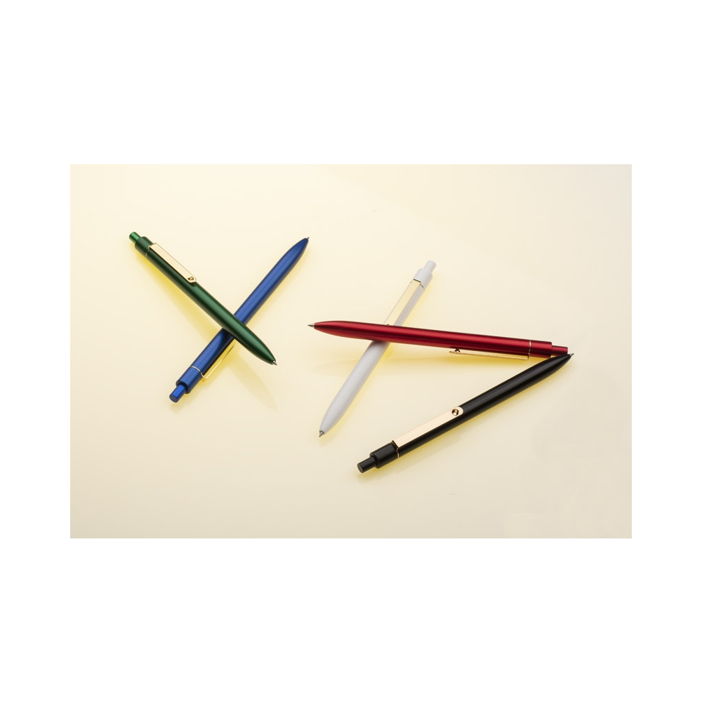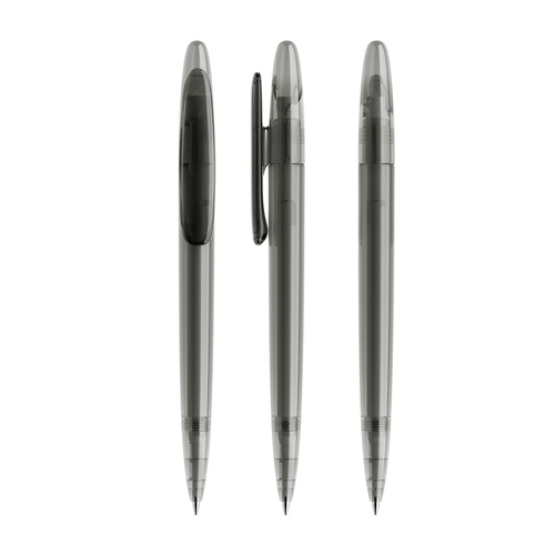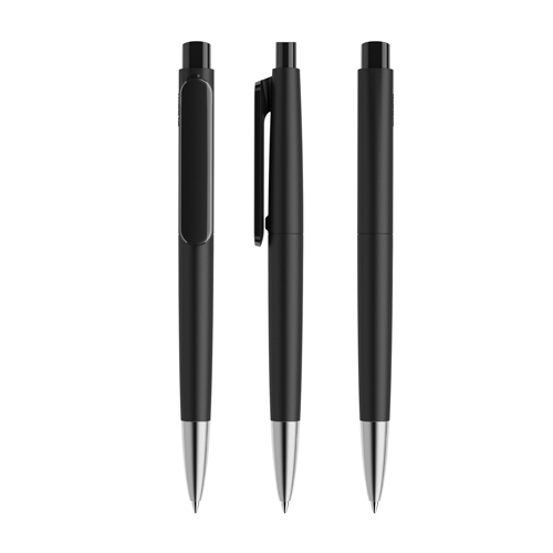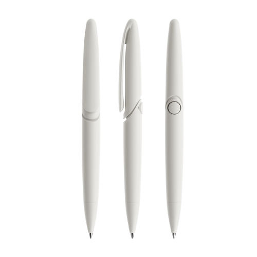 Wenn es um leichte Eleganz geht, reicht ihm keiner das Wasser. Wertig und harmonisch, setzt der Druckknopf in der Mitte einen dezenten Farbakzent. In der Ausführung mit mattem Gehäuse (PMM) lieferbar in den Farben Schwarz und Weiß, Sondergehäusefarben ab 10.000 Stück. Vier Druckflächen für Werbeanbringungen stehen zur Verfügung. Der Druckknopf ist farblich vom Gehäuse absetzbar. Das hochwertige neue FLOATING BALL® Schreibsystem sorgt für ein noch weicheres Schreibgefühl.