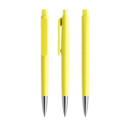 Der lang gestreckte Druckknopf verleiht ihm seine ganz individuelle Linie. Wie immer bei Prodir sind die Wände der Bauteile auf maximale Stärke ausgelegt. Das sorgt für intensiv leuchtende Farben und angenehme Schwere in der Hand. In der Ausführung mit gefrostetem Gehäuse (PFF) lieferbar in zwölf Standardfarben, Sondergehäusefarben ab 10.000 Stück. Fünf Druckflächen für Werbeanbringungen stehen zur Verfügung. Der beidseitig bedruckbare Druckknopf kann in Farbe und Oberfläche vom Gehäuse abgesetzt werden, besonders edel wirken Kombinationen mit Druckknopf in galvanisiertem und satiniertem Silber. Das hochwer ...
