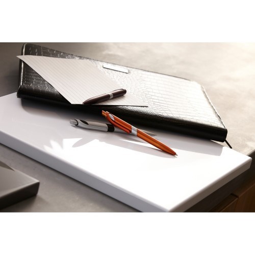 Der Nooshin Kugelschreiber wird aus recyceltem Aluminium hergestellt, was weniger Energie benötigt als die Herstellung von Aluminium aus Rohstoffen. Es reduziert außerdem die Abfallmenge auf Mülldeponien und trägt dazu bei, natürliche Ressourcen zu schonen und Treibhausgasemissionen zu reduzieren. Druckknopf ist aus Bambus gefertigt. Tintenfarbe: Schwarz. Schreiblänge: 800 Meter. Spitzengröße: 1,00 mm.