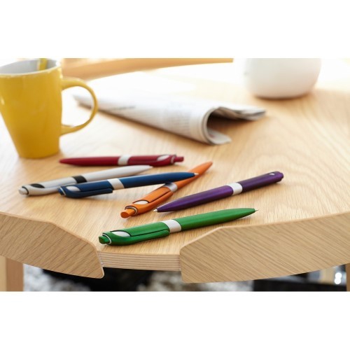 Druckkugelschreiber aus ABS mit Softgriff. Blaue Tinte.