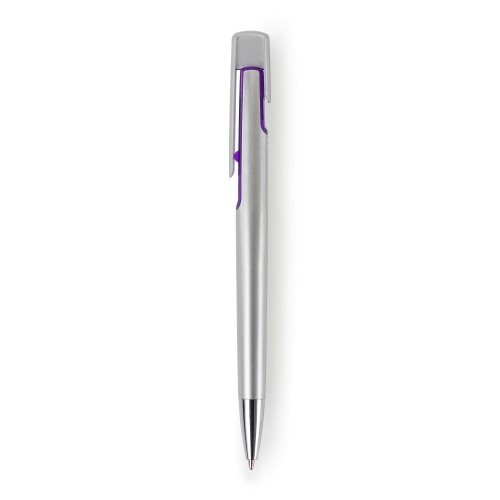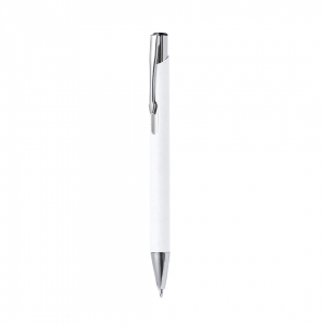 Kugelschreiber mit Push-Up-Mechanismus in elegantem zweifarbigem Design. Aluminiumgehäuse mit Gummiausrüstung, speziell für den Laserdruck entwickelt, dass das Logo in silberfarbenem Ton zeigt. Verchromte Spitze, Ringe und Metallclip. Erhältlich in einer breiten Palette von Farben, mit Jumbo-Patrone und blauer Tintenmine.
