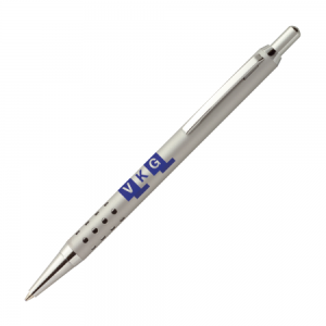 Schreibset aus Metall, bestehend aus einem Kugelschreiber mit blau schreibender Großraummine und einem Druckbleistift mit je 3 Zierringen. Ihre Werbung wird rechts vom Clip gelasert. Der Gravurpreis versteht sich für beide Schreibgeräte.